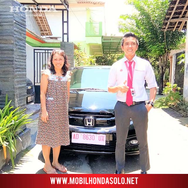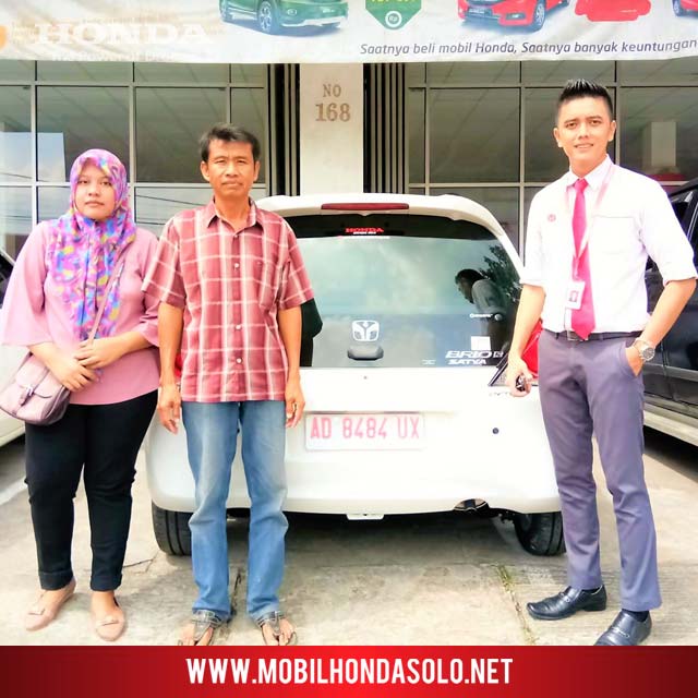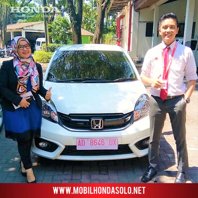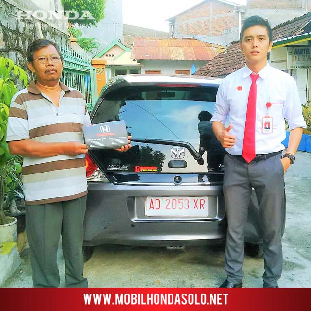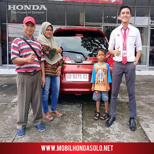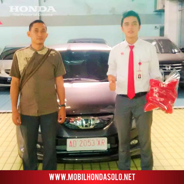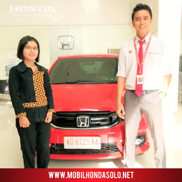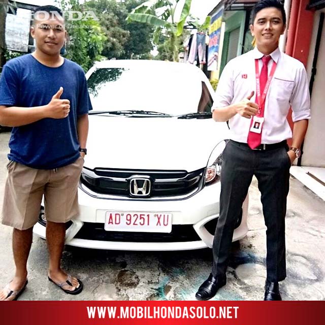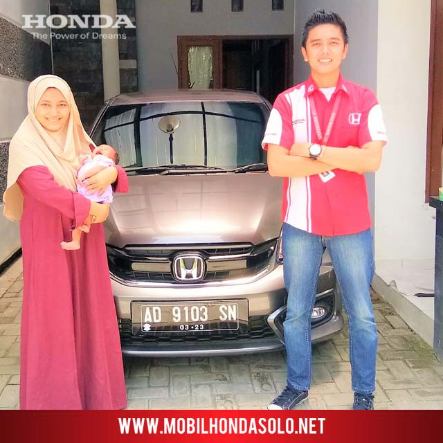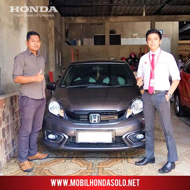 Penyerahan unit mobil baru New Honda Brio tipe E CVT warna Modern Steel kepada Mas Ari di Wonogiri, bersama AKHIR sales Honda Bintang Solo